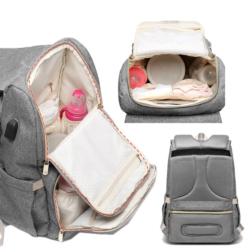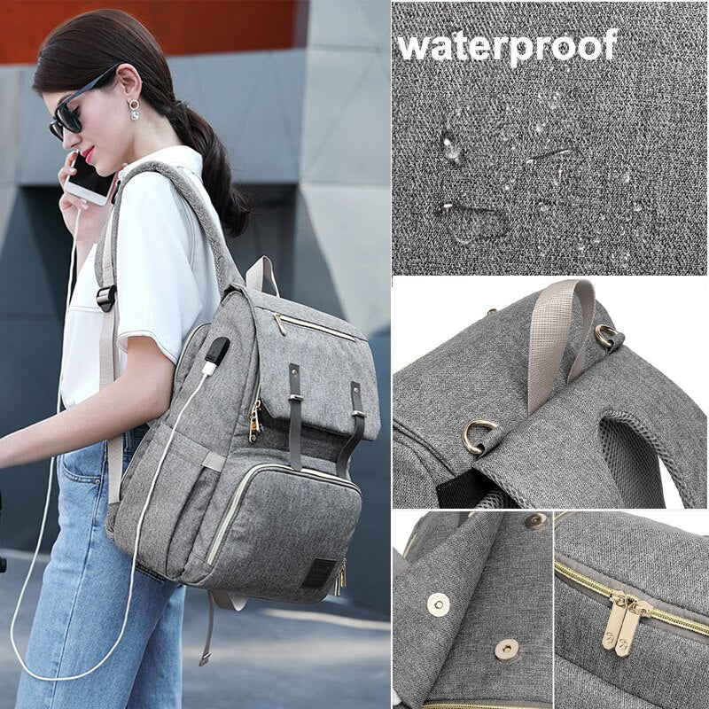 Nappy Bag USB Baby Diaper Backpack Large Capacity Waterproof