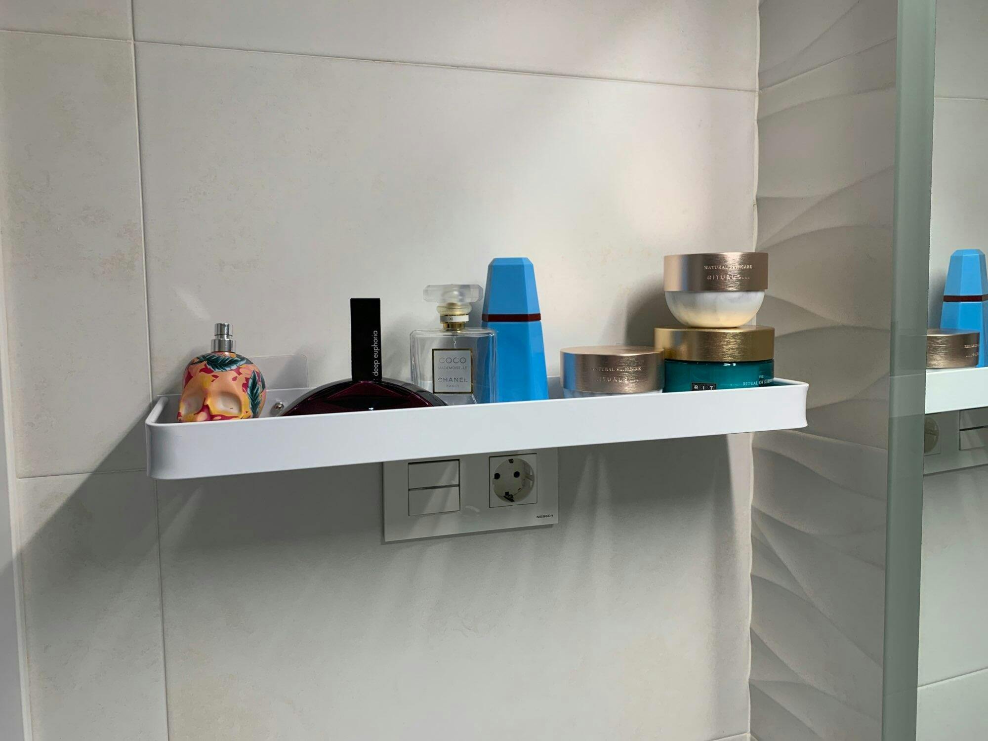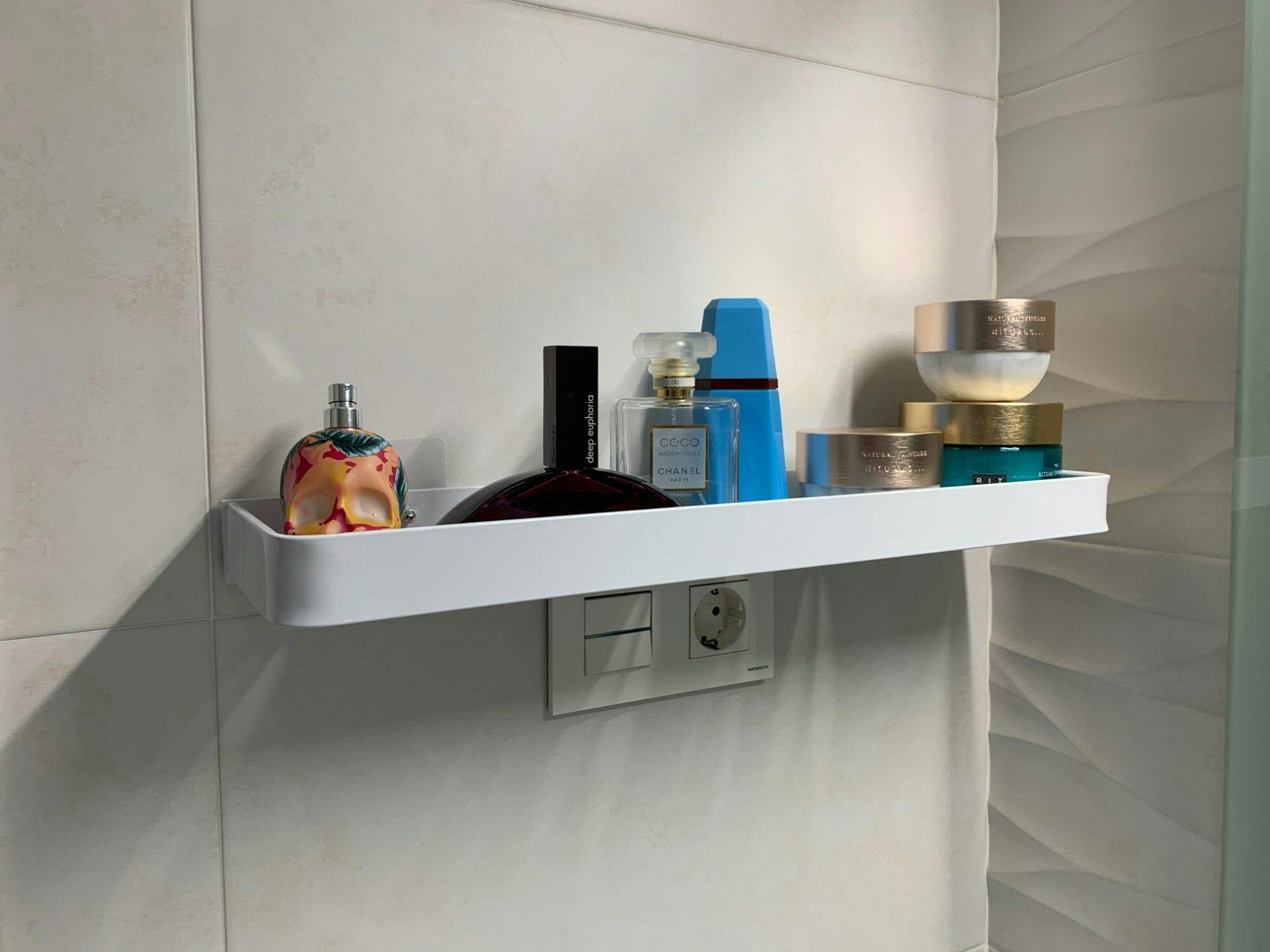 Organize any bathroom with this Shelf Shampoo Holder Storage Rack. Made from stainless steel and plastic, this rack provides sturdy, reliable storage for all your shampoo, soap, and more, and can be easily assembled in minutes. Its sleek, modern design adds a touch of elegance to your bathroom.