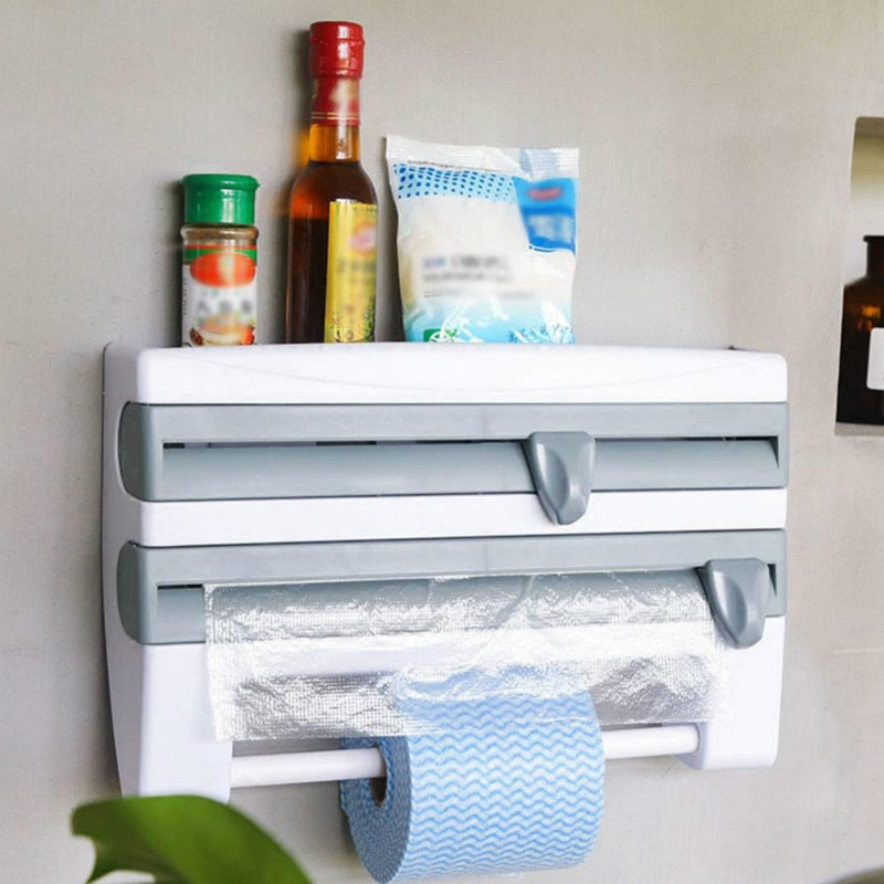 4-in-1 Kitchen Storage Rack Paper Towel Holder Wall