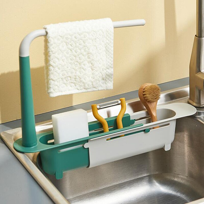 This Sink Shelf Kitchen Sinks Organizer enables you to keep sponges and towels conveniently within reach while cooking or cleaning. Made of durable materials, it is designed to fit most kitchen sinks and provides a neat storage solution for your kitchen.
