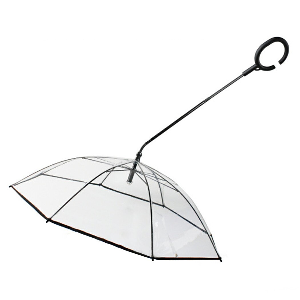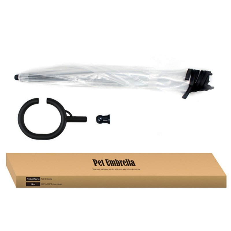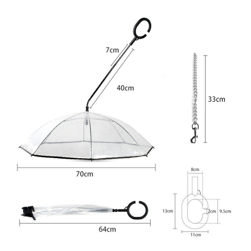 Keep your pet dry while walking in the rain with this innovative Transparent Pet Umbrella With Dog Leash. The pet-friendly design features a leash and quick-hook opening, making this a practical and convenient choice for pet owners. The transparent material is durable and provides optimal visibility. Enjoy long walks with your furry friend, rain or shine.